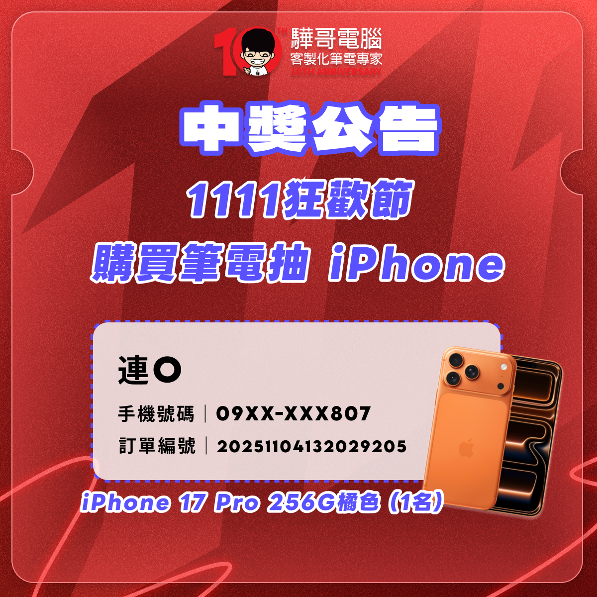 🎉【1111 狂歡節|iPhone 17 Pro 幸運得主出爐!】🎉