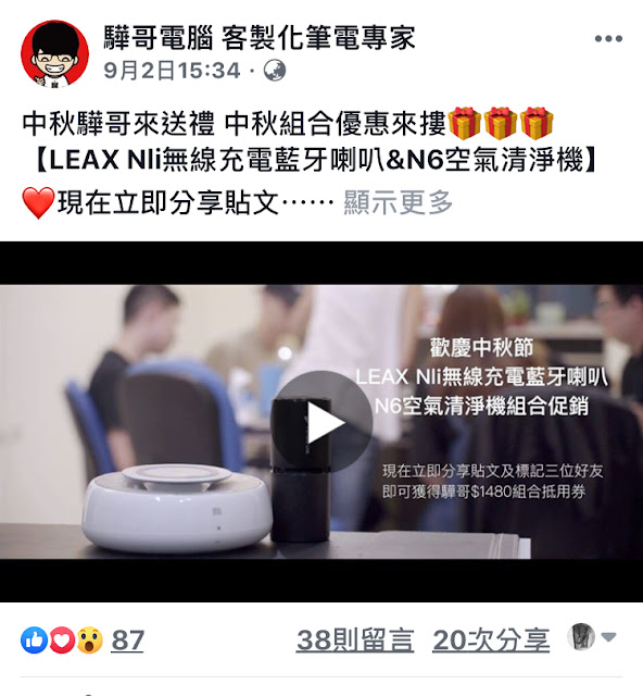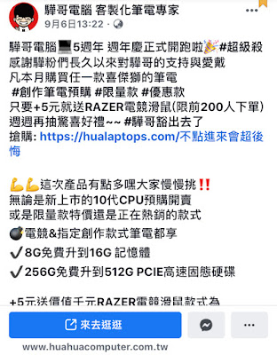 驊哥電腦FB粉絲專頁還常常有優惠活動和抽獎活動