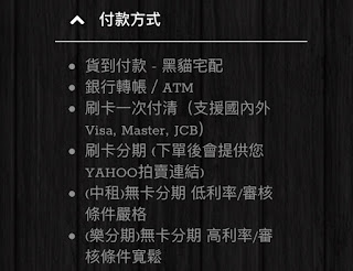 有銀行轉帳/ATM、刷卡(一次付清/分期)、無卡分期、貨到付款等方式