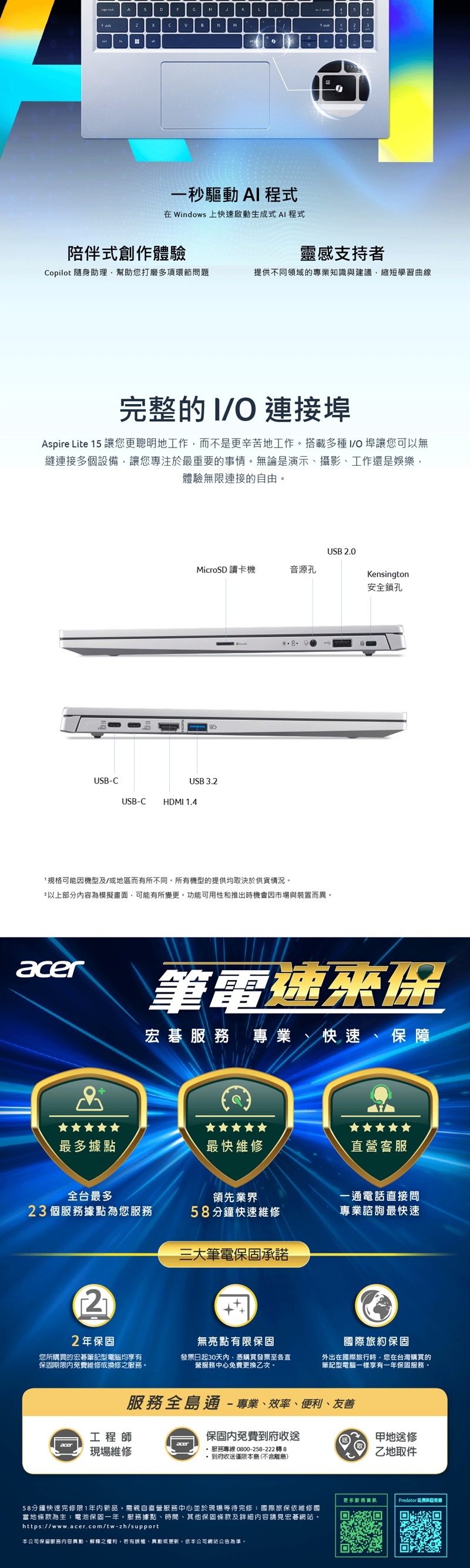 備註:以上規格如有任何問題,保固範圍及相關服務規範,請依ACER原廠公告為主