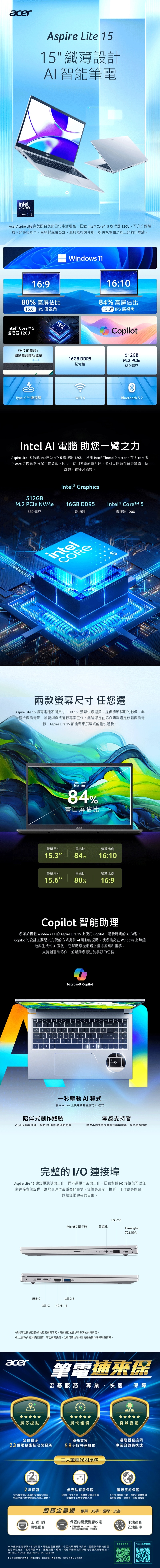 ACER 宏碁 Aspire Lite AL15-52P-53DK 銀色 (Intel Core 5 120U/16G/512GB/W11/FHD/15.6) 客製化文書筆電