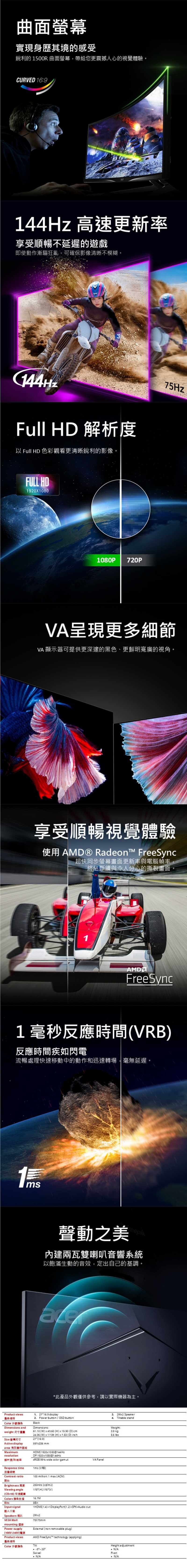 Acer 宏碁 Nitro ED270 P0 曲面電競螢幕 (27型/FHD/144Hz/1ms/HDMI/DP/VA)