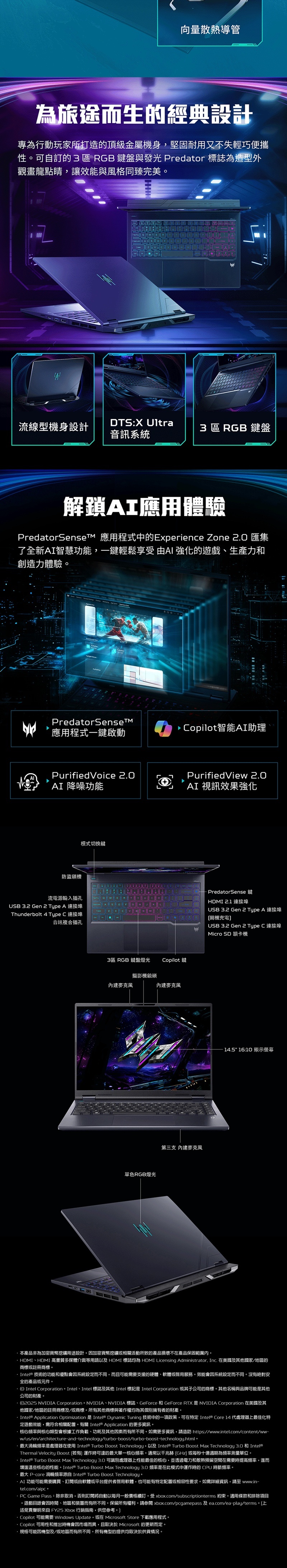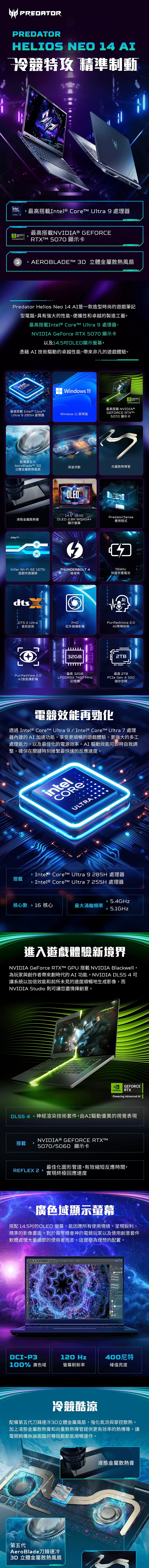 【下單再送】ACER 宏碁 Predator PHN14-71-74GT 黑 (Intel Core Ultra 7 255H/32G/1TB/RTX5060/WIN11/WQXGA+/120Hz/14.5) 客製化AI電競筆電