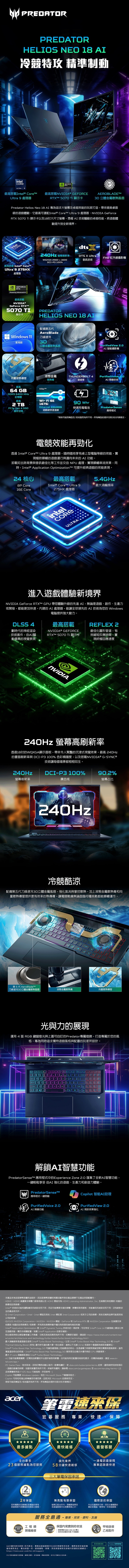 【下單再送】ACER 宏碁 Predator PHN18-72-92A2 黑 (Intel Core Ultra 9 275HX/32G/1TB/RTX5070TI/W11/WQXGA/240Hz/18) 客製化AI電競筆電