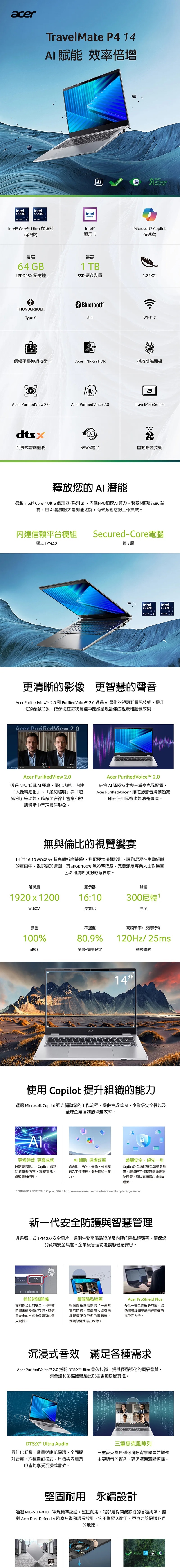 【下單再送】ACER 宏碁 TravelMate TMP414-55-77T7 銀色 (Intel Core Ultra 7 255U/16G/1TB/W11P/WUXGA/14) 客製化AI商務筆電