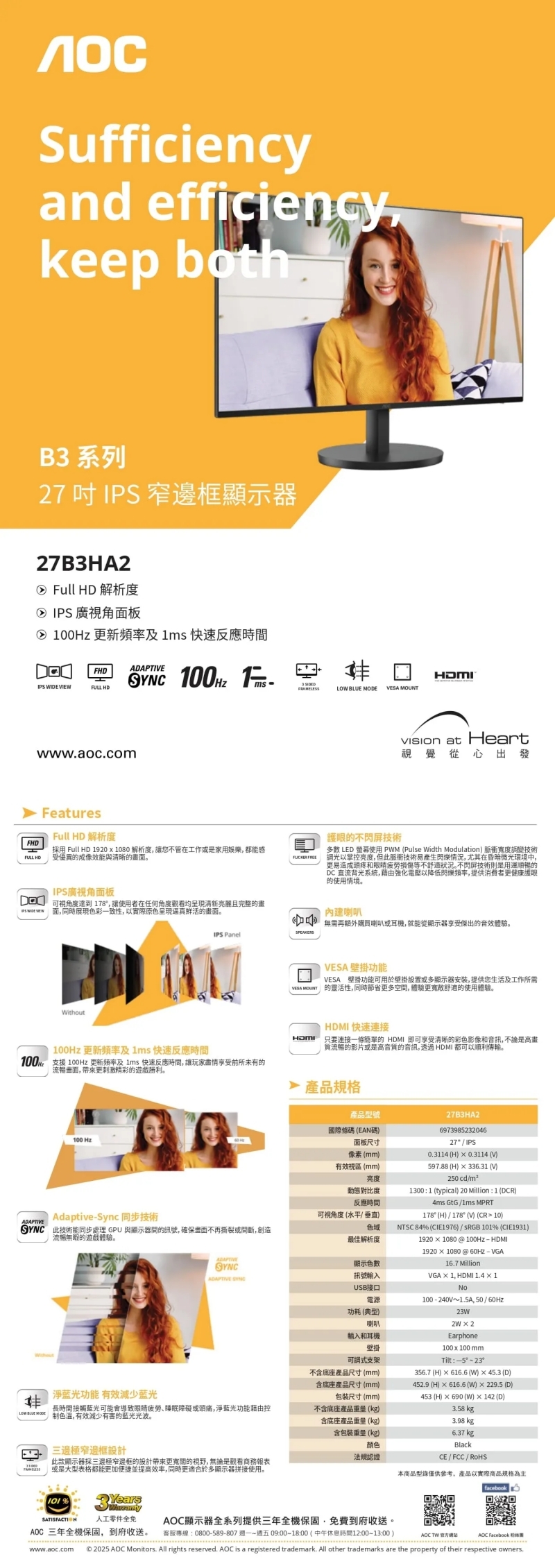 備註:以上規格如有任何問題,保固範圍及相關服務規範,請依AOC原廠公告為主