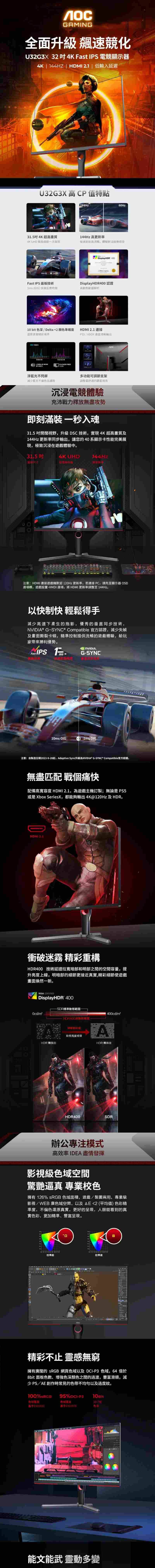 AOC U32G3X 平面電競螢幕