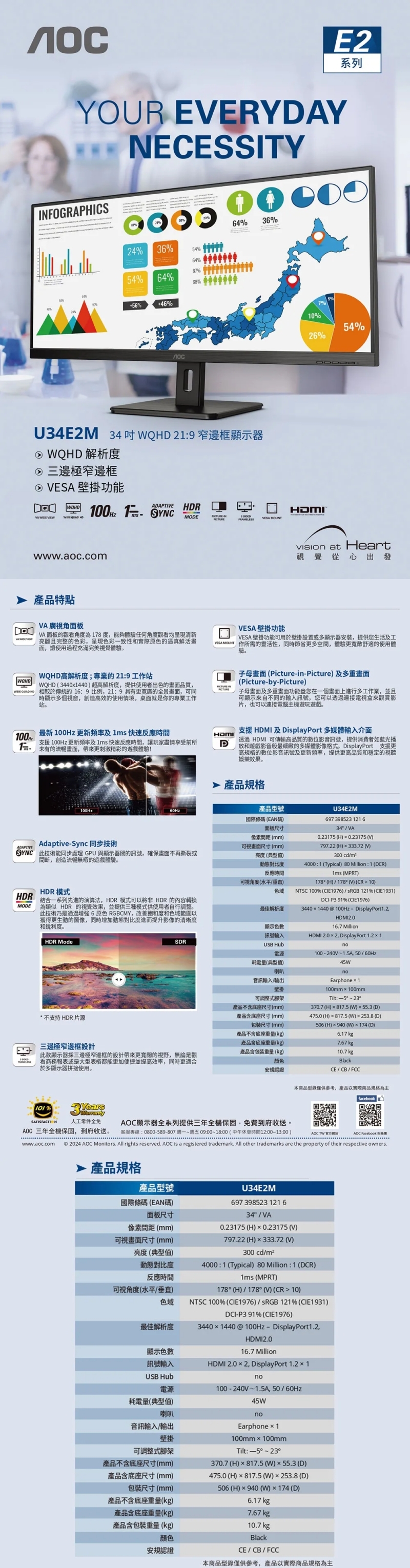 備註:以上規格如有任何問題,保固範圍及相關服務規範,請依AOC原廠公告為主