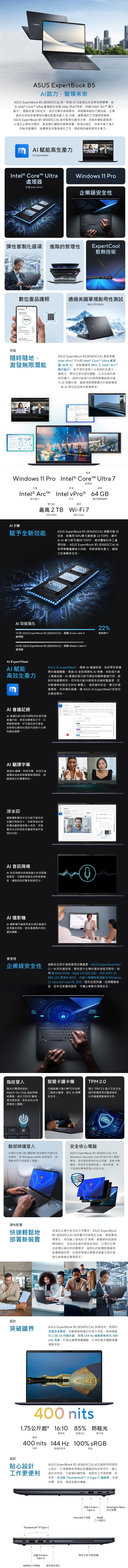 【下單再送】ASUS 華碩 ExpertBook B5605CCA-0021A225H 黑色 (Intel Core Ultra 5 225H/16G/512GB/W11P/WQXGA/16) 客製化AI商務筆電