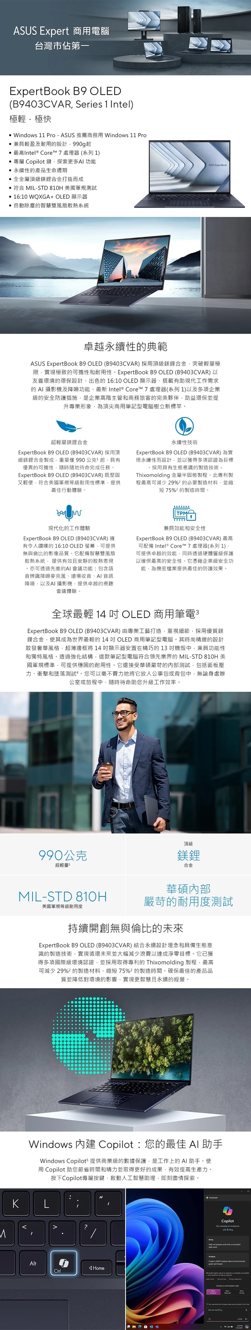 【下單再送】ASUS 華碩 ExpertBook B9403CVAR-3871A150U 藍色 (Intel Core 7 150U/32G/1TB/W11P/WQXGA+/14) 客製化商務筆電