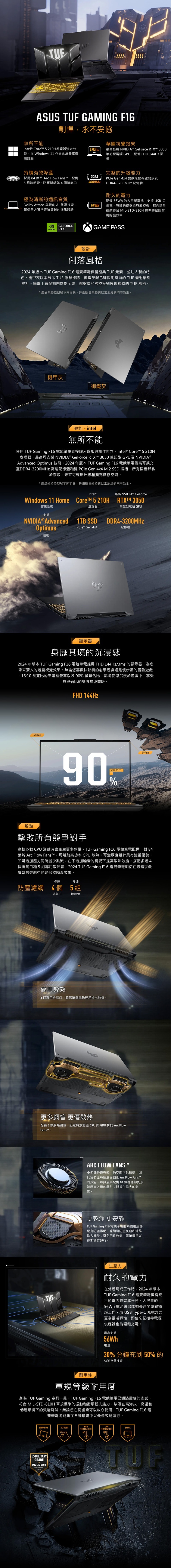 ASUS 華碩 FX607VJB-0053A210H 灰色 (Intel Core 5 210H/16G/1TB/RTX3050/W11/FHD+/144Hz/16) 客製化電競筆電