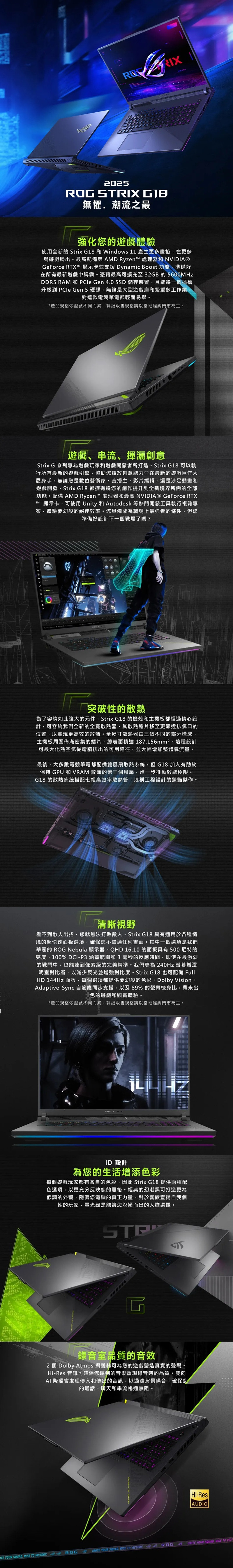 【下單再送】ASUS 華碩 ROG Strix G18 G814PP-0034C8940HX-NBL (AMD R9-8940HX/16GB/RTX 5070/1TB/W11/2.5K/240Hz/18) 客製化電競筆電