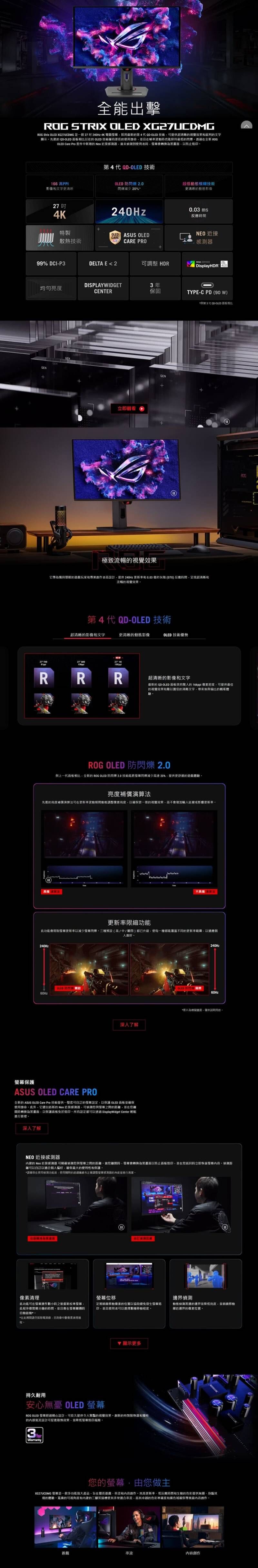 ASUS 華碩 ROG Strix XG27UCDMG 電競螢幕 (27型/4K/240Hz/0.03ms/HDMI2.1/Type-C/QD-OLED)