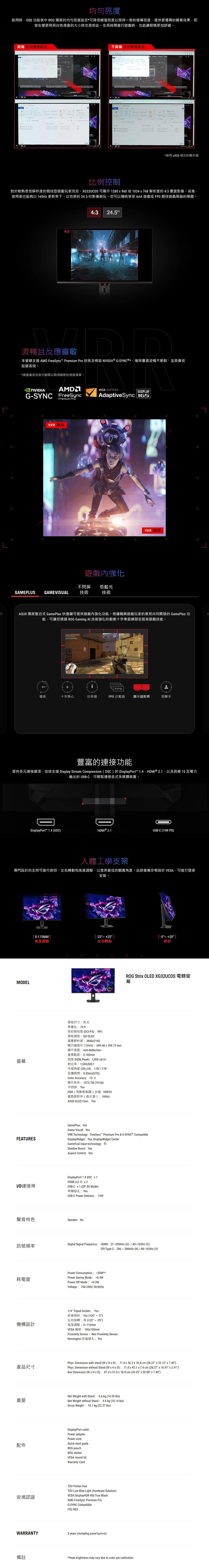備註:以上規格如有任何問題,保固範圍及相關服務規範,請依ASUS原廠公告為主