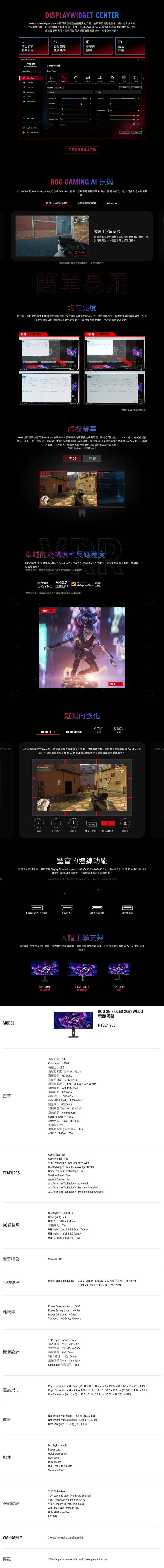 ASUS 華碩 ROG Strix XG34WCDG 電競螢幕 (34型/UWQHD/175Hz/0.03ms/QD-OLED/HDMI2.1/Type-C)