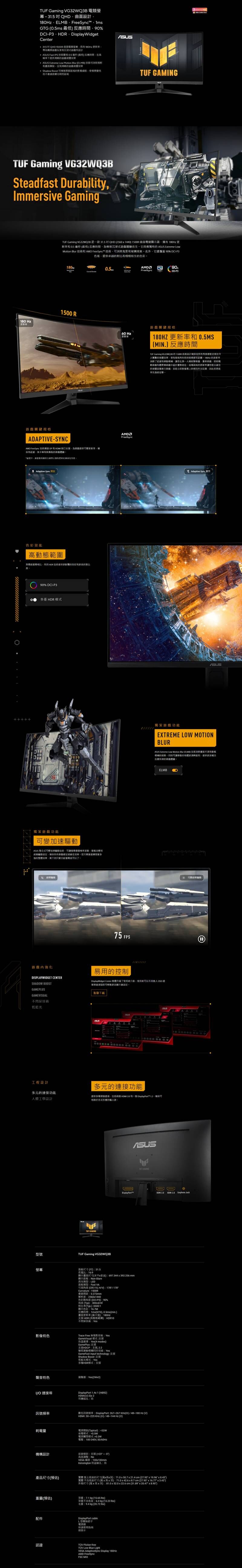 ASUS 華碩 TUF Gaming VG32WQ3B 電競螢幕