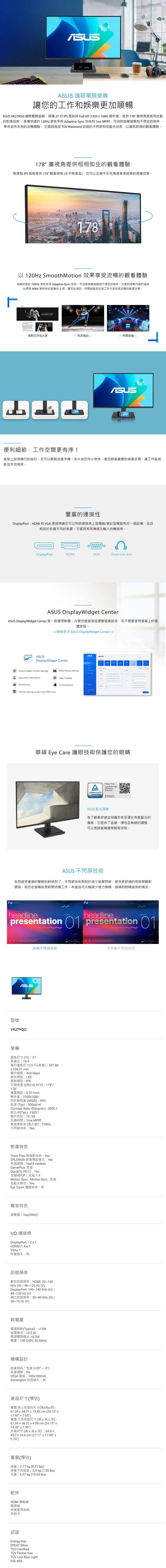 ASUS 華碩 VA279QG 護眼螢幕 (27型/FHD/120Hz/HDMI/DP/VGA/IPS)