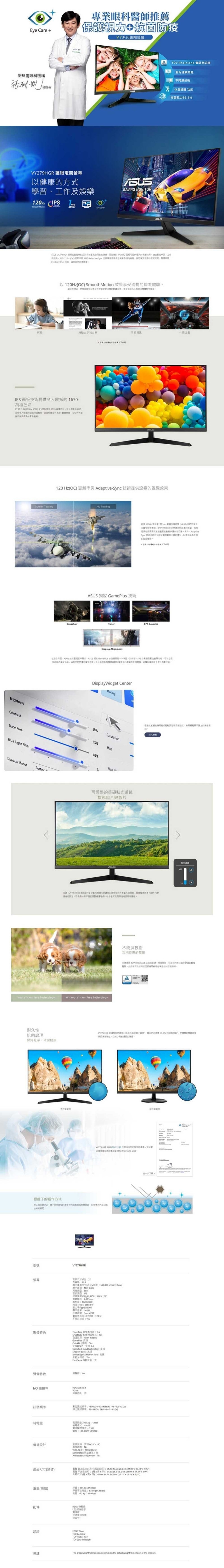 ASUS 華碩 VY279HGR 護眼電競螢幕 (27型/FHD/120Hz/HDMI/IPS)