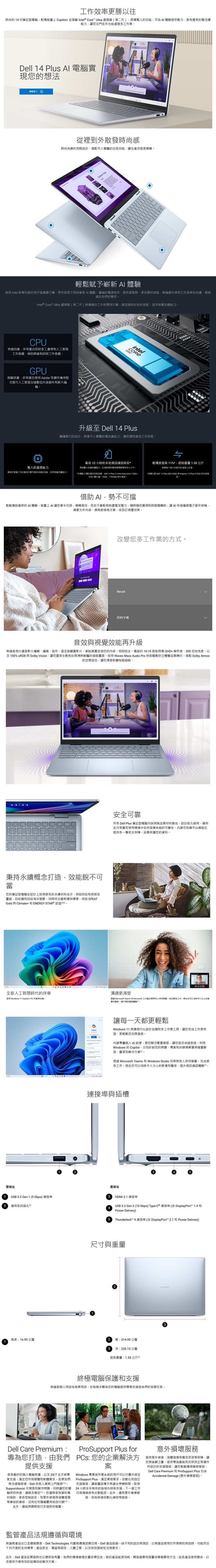 【下單再送】DELL 戴爾 14 Plus DB14250-R1608STW 冰川銀 (Intel Core Ultra 5 228V/32GB/1TB/WIN11/2.5K/14) 客製化AI文書筆電