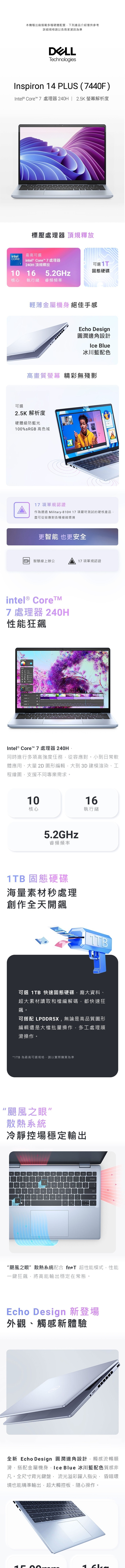 DELL 戴爾 Inspiron 14 Plus 14-7440F-R1508LTW 藍色 (Intel Core 5 210H/8G*2/512G/W11/FHD+/14) 客製化文書筆電