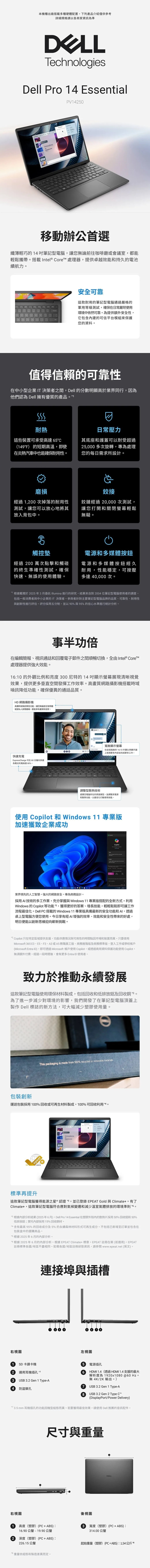 DELL 戴爾 Pro 14 Essential PV14250-R1608BTW 黑色 (Intel Core 5 120U/16GB/512GB/W11P/FHD+/14) 客製化商務筆電