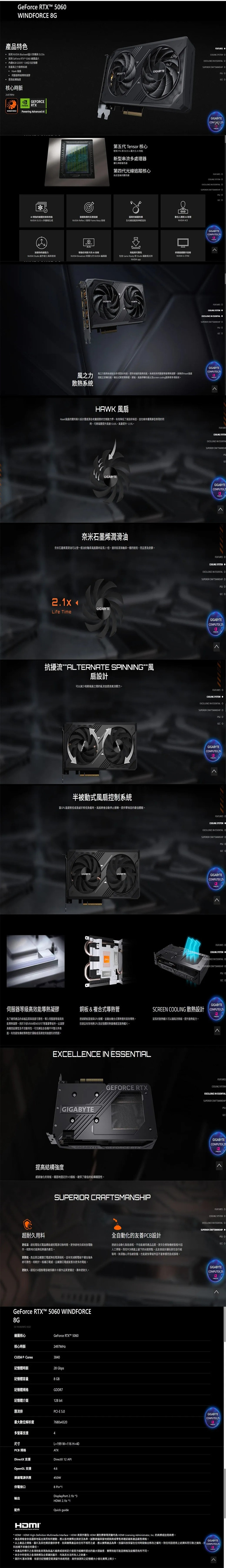 GIGABYTE 技嘉 GeForce RTX 5060 WINDFORCE 8G 顯示卡