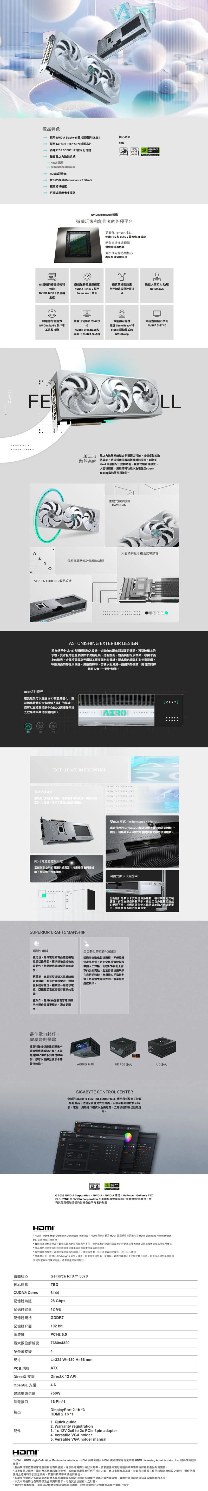 GIGABYTE 技嘉 GeForce RTX 5070 AERO OC 12G 顯示卡