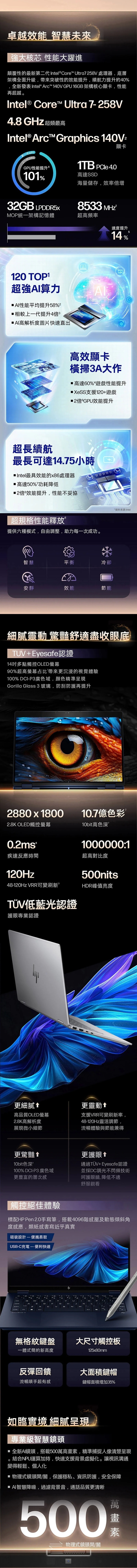 處理器:Intel Core Ultra 5 225H TSMC N3B技術/14核心/14執行緒/13 NPU TOPS (1.7GHz, turbo up to 4.9GHz ; 18MB L3 Cache)