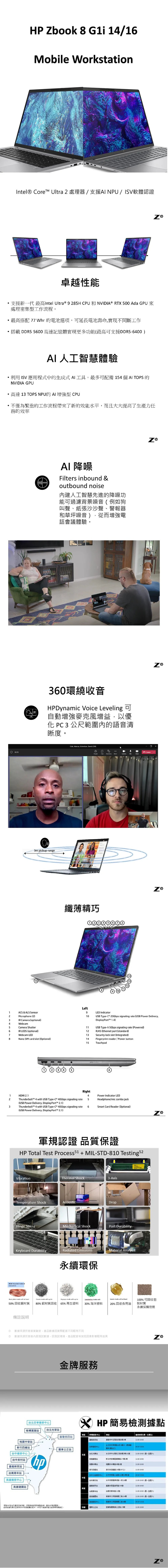 【下單再送】HP 惠普 ZBOOK 8 G1i BR7Q0PT (Intel Core Ultra 7 255H/16G/RTX500/1TB/W11P/WUXGA/16) 客製化AI商務筆電