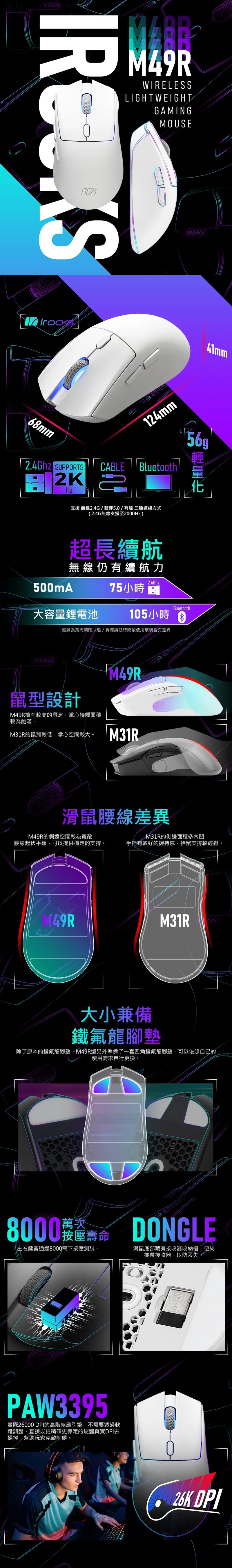 i-Rocks 艾芮克 M49R 藍芽 無線 三模 光學 輕量化 電競 滑鼠 白色
