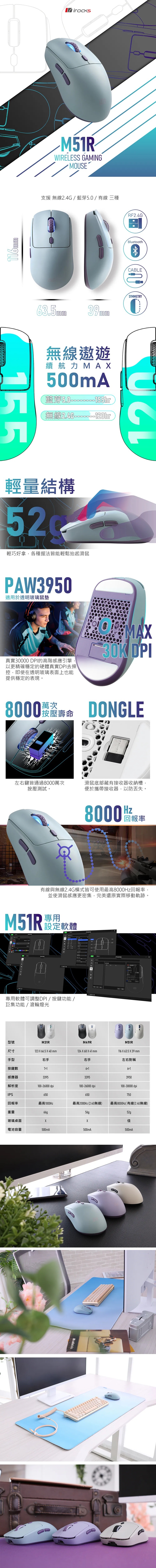 i-Rocks 艾芮克 M51R 藍芽 無線 三模 電競 滑鼠 雲際藍