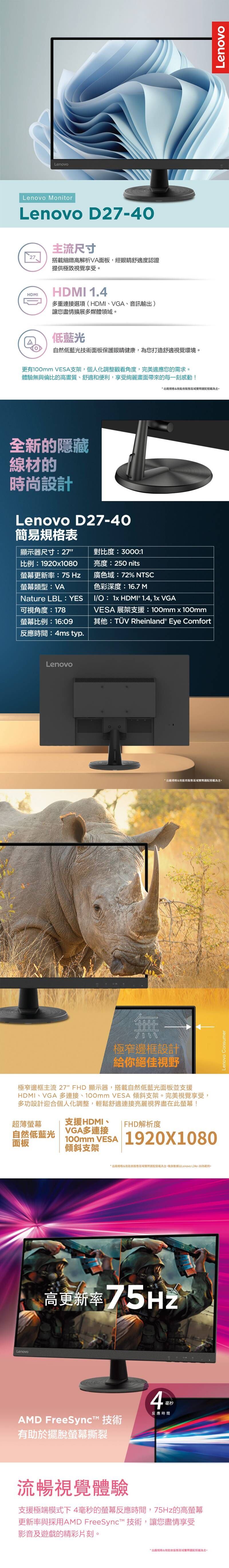Lenovo 聯想 D27-40 窄邊框螢幕