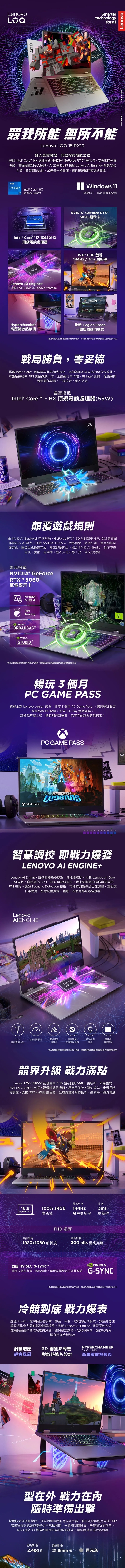 Lenovo 聯想 LOQ 15IRX10 83JE00JKTW 灰 (i7-13650HX/12Gx2/RTX5050/1TB/W11/FHD/15.6) 客製化電競筆電