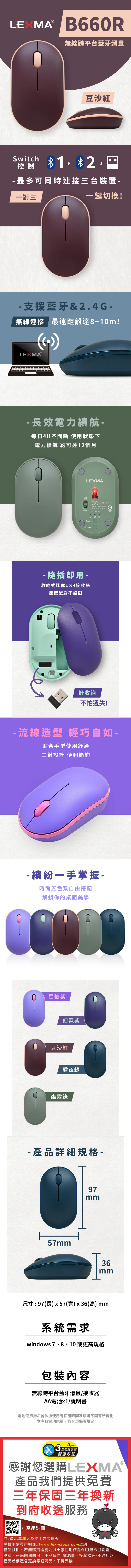 LEXMA 雷馬 B660R 無線跨平台藍牙滑鼠-豆沙紅
