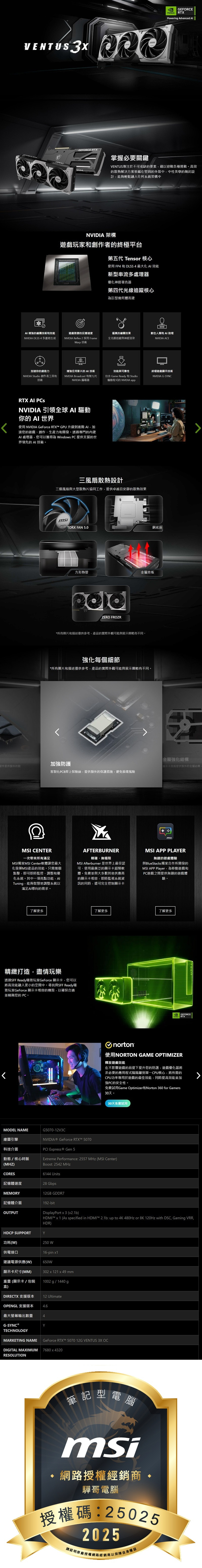 MSI 微星 GeForce RTX 5070 12G VENTUS 3X OC 顯示卡