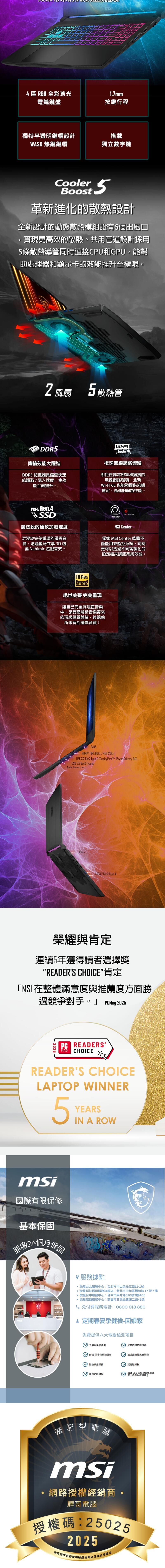 備註:以上規格如有任何問題,保固範圍及相關服務規範,請依MSI原廠公告為主