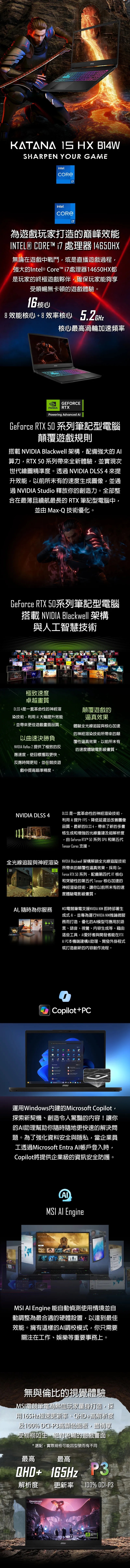 【下單再送】MSI 微星 Katana 15 HX B14WGK-647TW (i7-14650HX/16GB/1T/RTX5070/WIN11/QHD/165Hz/15.6) 客製化電競筆電