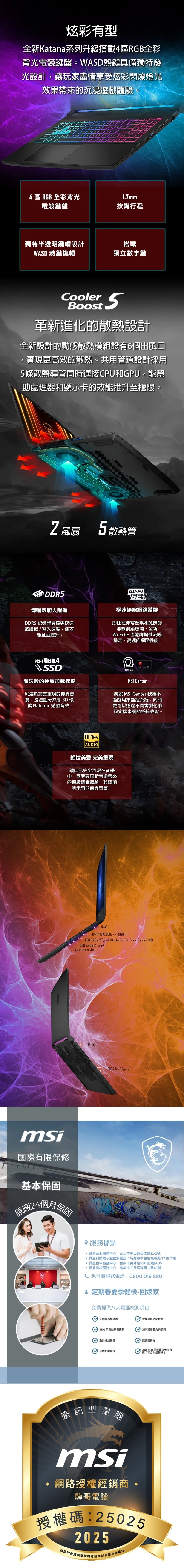 型號: Katana 15 HX B14WGK-647TW-BB71465X16GXXDX11MA