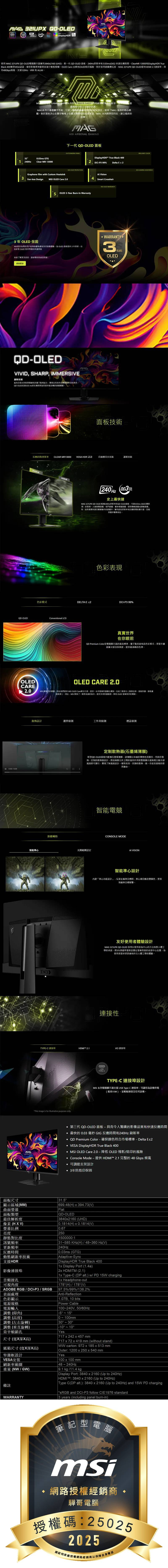 備註:以上規格如有任何問題,保固範圍及相關服務規範,請依MSI原廠公告為主