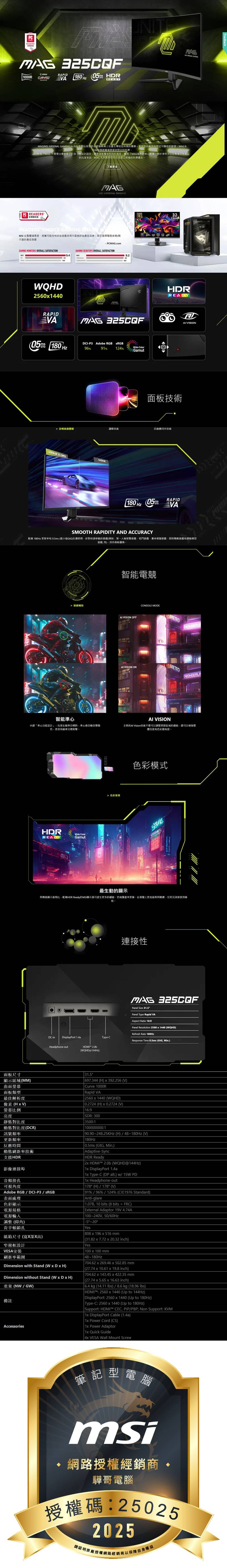 MSI 微星 MAG 325CQF 曲面電競螢幕 (180Hz/1000R/0.5ms)