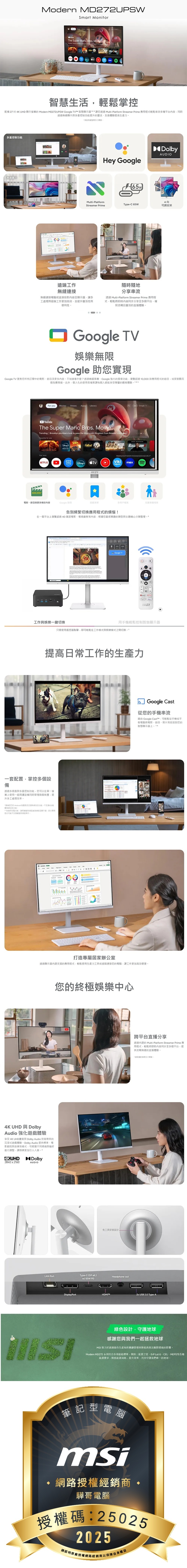 MSI 微星 Modern MD272UPSW 智慧聯網平面美型螢幕 (27型/4K/HDMI/喇叭/IPS)