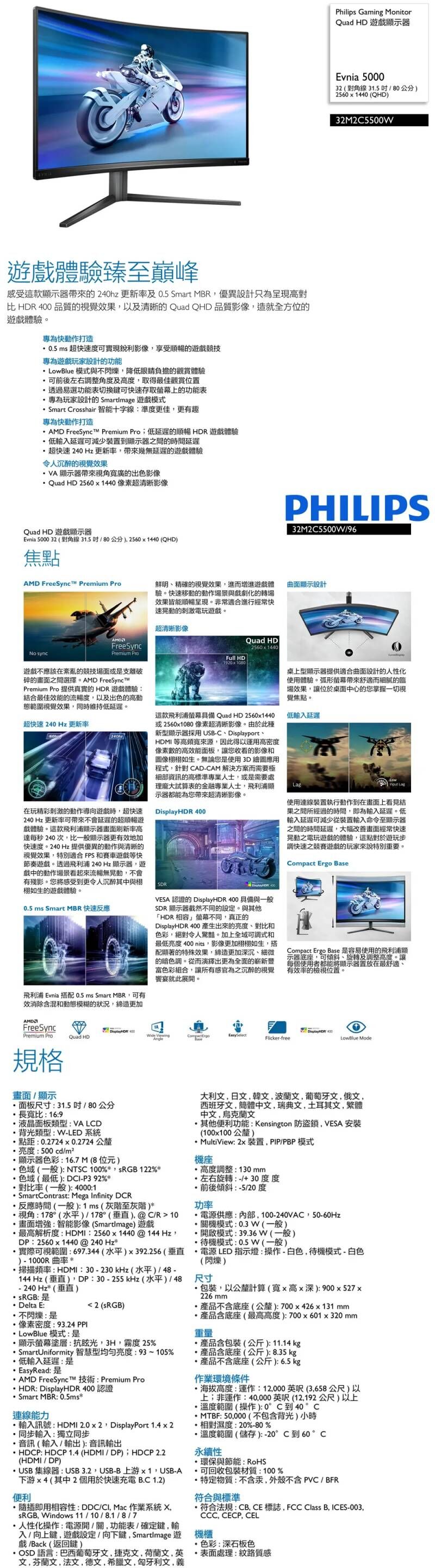 備註:以上規格如有任何問題,保固範圍及相關服務規範,請依Philips原廠公告為主