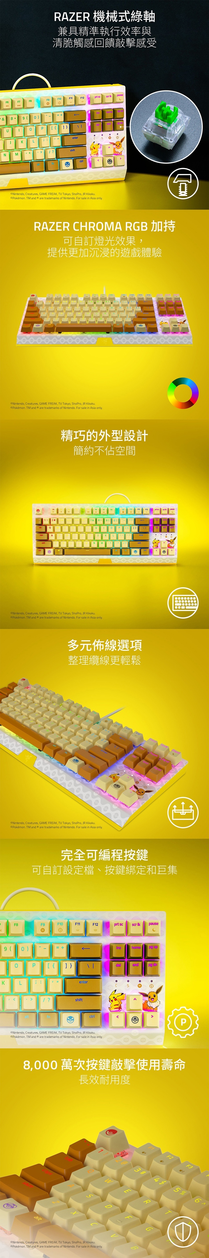 RAZER 雷蛇 BlackWidow V3 TKL-Pokemon Edition 黑寡婦V3 TKL-寶可夢聯名款 有線電競鍵盤 (綠軸/英文)