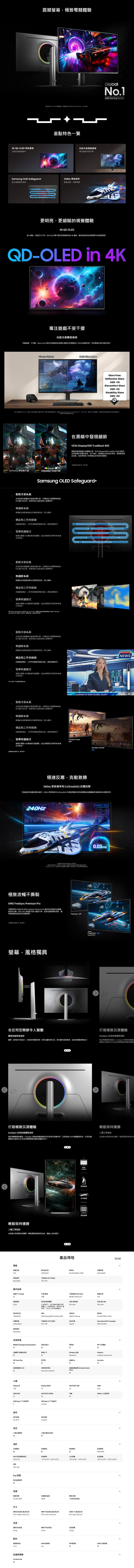 SAMSUNG 三星 S32FG812SC Odyssey OLED G8 電競螢幕 (32型/4K/240Hz/0.03ms/HDMI2.1/OLED)