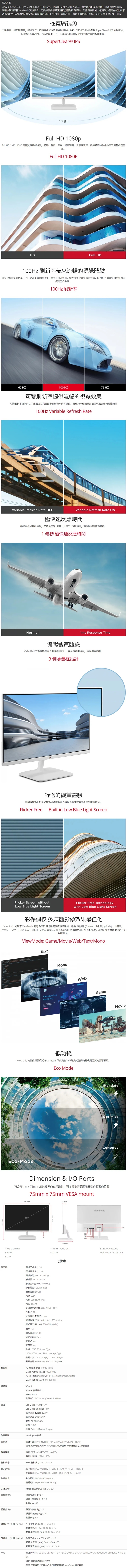 ViewSonic 優派 VA2432-H-W 無邊框螢幕 (24型/FHD/100Hz/HDMI/IPS)