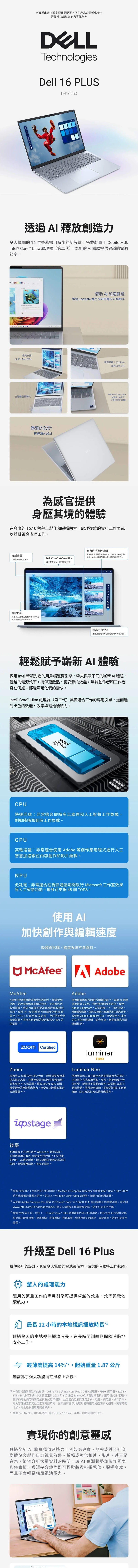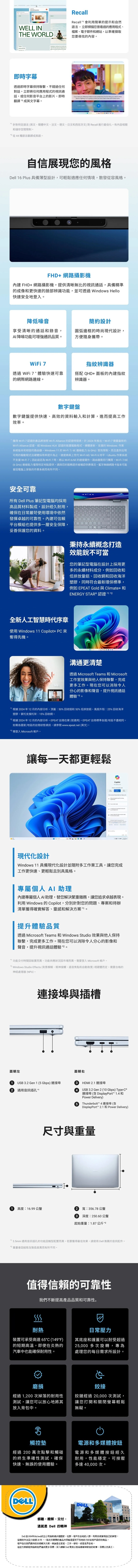 【下單再送】DELL 戴爾 16 Plus DB16250-R1508STW 藍色 (Intel Core Ultra 5 226V/16GB/1TB/W11/2.5K/16) 客製化AI文書筆電