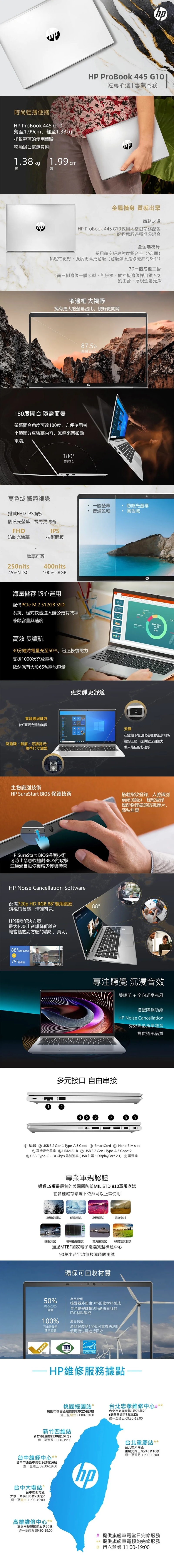 【下單再送】HP 惠普 ProBook 445 G10 銀色 (R7-7730U/16GB/512GB/W11P/FHD/14) 客製化商務筆電